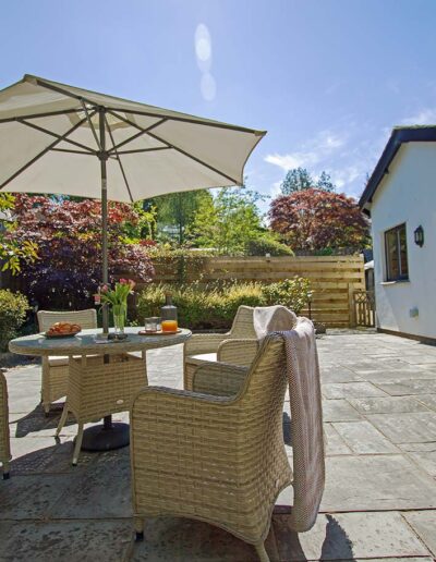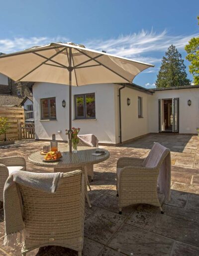 French doors lead from the living area out to a large enclosed private patio area with furniture provided and ideal for al fresco dining. Oakthwaite Lodge is all on one level.