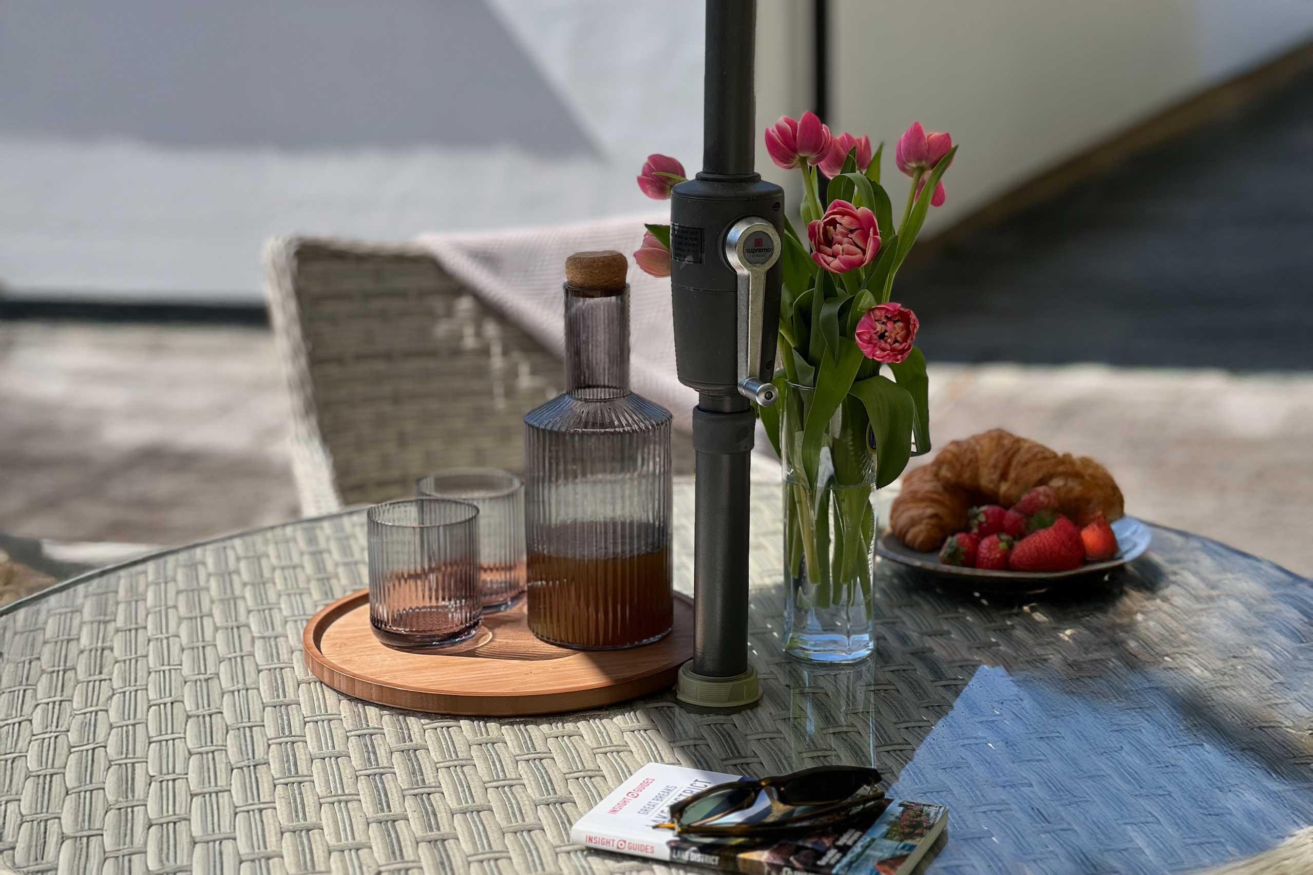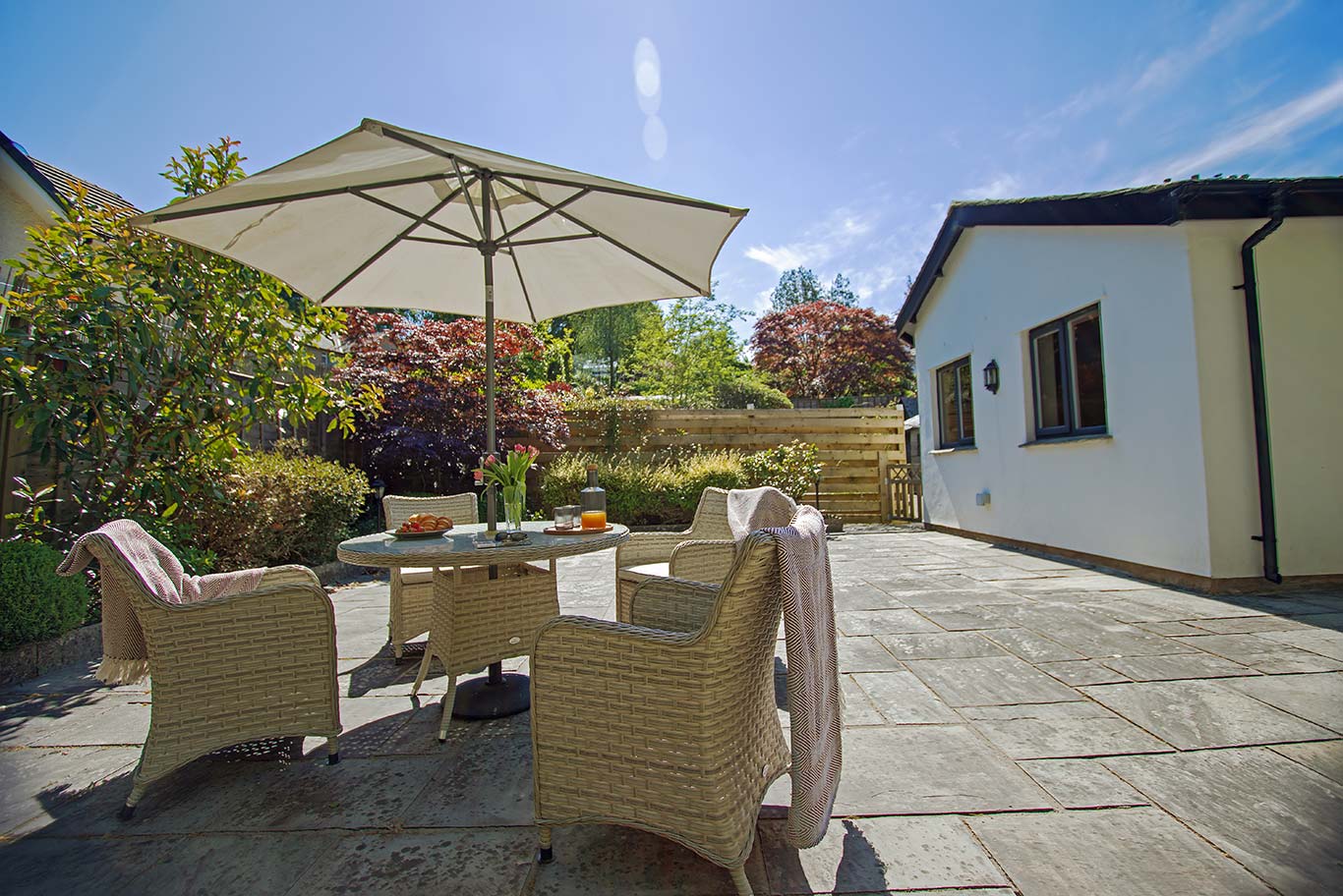 Open the double doors from the lounge and step onto your own private enclosed patio, a perfect spot for relaxation. This charming area features a seating arrangement for four, complete with a sunshade to keep you comfortable during sunny afternoons. Whether you’re enjoying a meal outdoors, diving into a good book, or simply soaking in the tranquility, this patio is your personal oasis. Plus, it’s a safe space for your supervised pets to enjoy the fresh air.