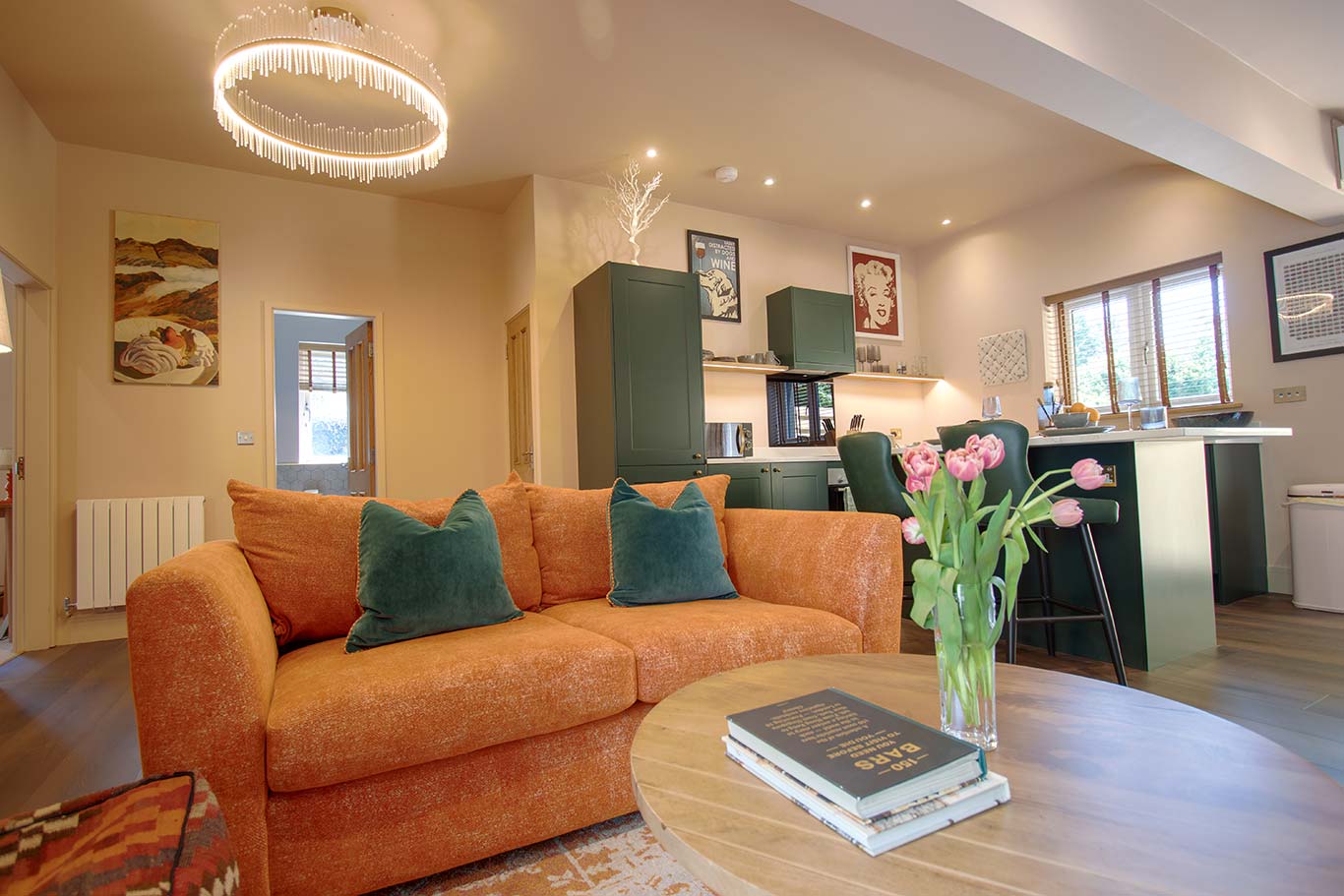 As you step into Oakthwaite Lodge, you will immediately sense the harmonious blend of elegance and comfort that defines this exquisite retreat. The lodge is adorned with high-quality modern fixtures and fittings, each piece carefully selected to create a stylish and inviting living space that feels both contemporary and warm. The first area you’ll discover is the beautifully designed kitchen, which is fully equipped with everything you might need for a delightful stay, ensuring that all essentials are conveniently at your fingertips. Beyond the kitchen, the expansive open-plan living area awaits, featuring plush seating arrangements and a large flat-screen smart TV, perfect for unwinding after a day filled with adventure. The lighting throughout the lodge strikes a perfect balance, being bright yet subtly warm, crafting an inviting ambience that enhances your overall experience and encourages relaxation.