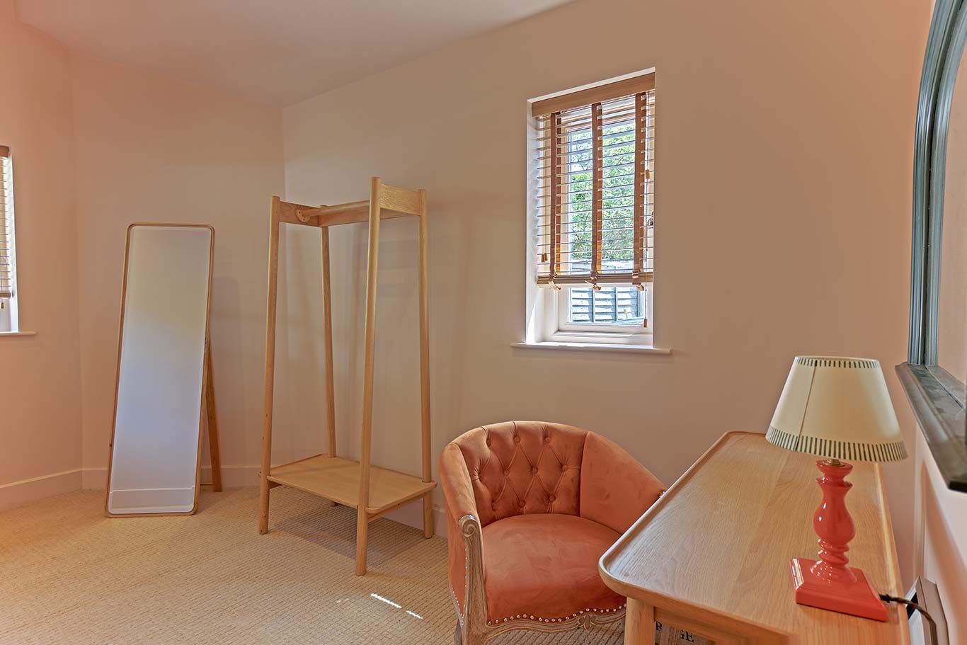 For additional convenience, there is a dressing room with storage, full length mirror and dressing table (with mirror) off the open plan lounge, ideal for visitors planning a special occasion or as guests of a wedding.