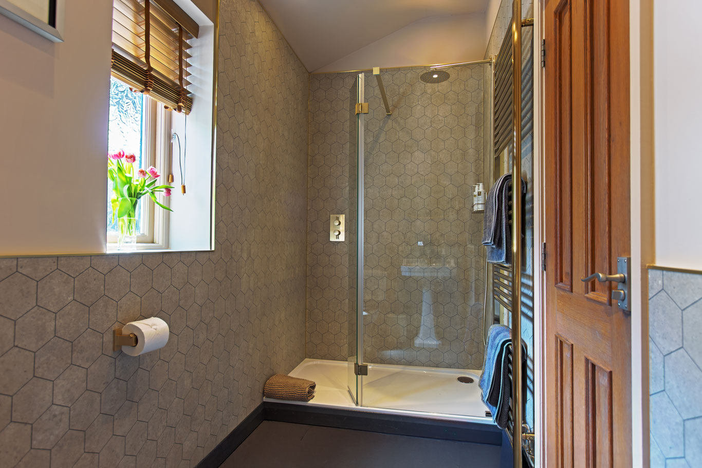 At the end of the day, nothing is more essential to a holiday than the promise of rest and relaxation. After your journey here or a day spent exploring the breathtaking English Lake District, you’ll find solace in the inviting embrace of the cosy double bedroom at Oakthwaite Lodge. Bathed in natural light from two expansive windows, this serene space transforms effortlessly with electric remote control blinds, allowing you to create the perfect ambience for a restful night’s sleep. Adjacent to the bedroom, a spacious dressing room awaits, complete with a full-length mirror and useful dressing table—ideal for preparing for a wedding, special event, or simply gearing up for your day of adventure. Just steps away, the shower room features a large walk-in shower, where the soothing monsoon shower head washes away the stresses of the day, ensuring you can fully unwind and rejuvenate in this charming lodge. With the stunning landscape surrounding you, every moment at Oakthwaite Lodge invites you to escape the ordinary and embrace tranquility.